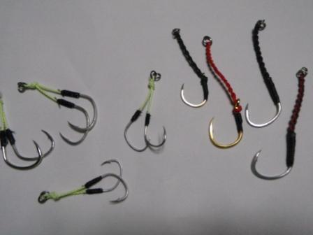 他にもメリットがある。根掛りの減少、テーリング(フックとラインが絡むこと、通称エビ)の減少、口に掛かる可能性が高いのでバラシの減少、他にもいろいろあるが、何といっても自分の好みのフックを自作できる楽しみがある。