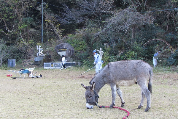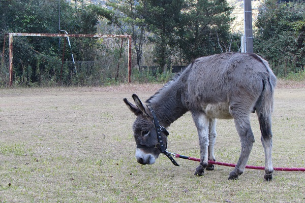 長浦にある勇志国際高校さんのロバちゃんで、とてもかわいい目をしているんですよ。