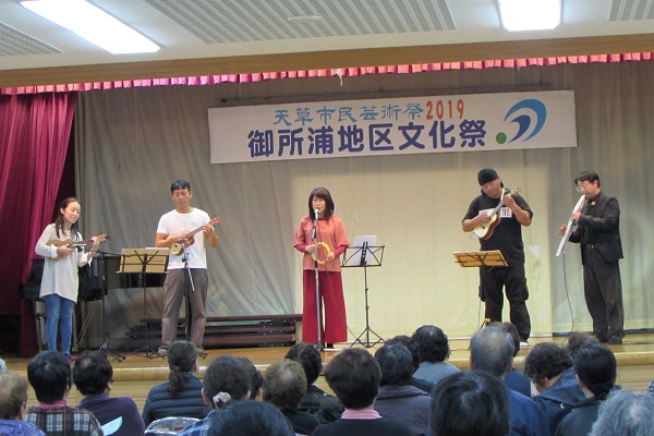 御所浦コミセン内でもアイランドスターズ・ばってんウクレレクラブ・嵐口春日太鼓の皆さんのとても素敵なステージイベントが行われていました!