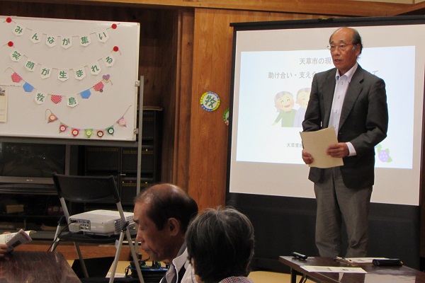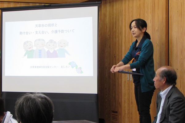 介護支援専門員の方を御迎えして、天草市の現状と介護予防、社会参加の大切さについて、お話していただきました。