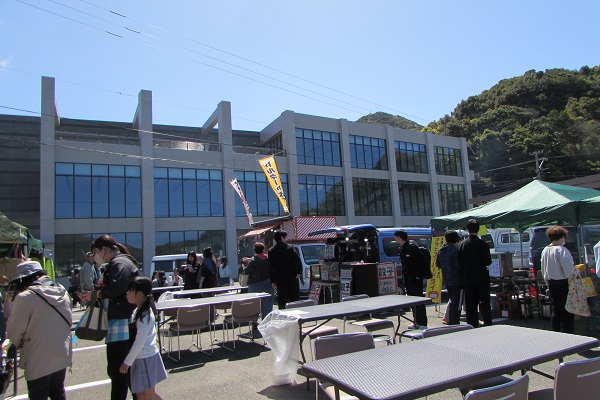 ▼先日リニューアルオープした御所浦恐竜の島博物館まえはとても賑やかでした