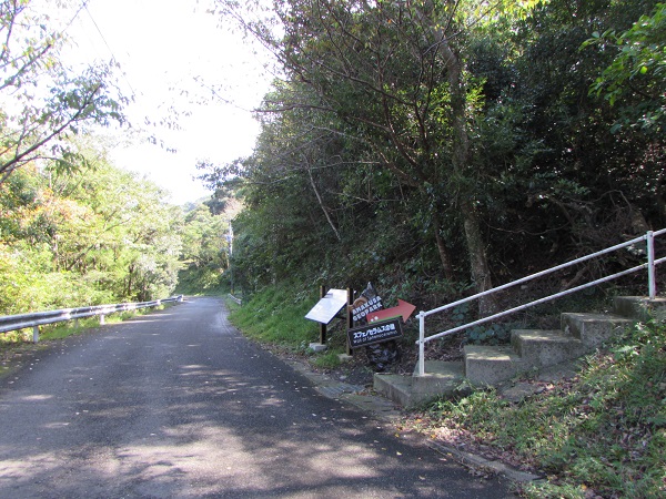 ▼ 椛ノ木へと続く山道を行くと、何やらポップな看板が!