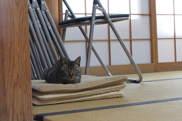 ホームページをご覧のみなさん!こんにちは、ある日の牧島コミセン・集会室にお客様が、くつろぎ中でした。管理人ひとりでおどろき、その後ひとりで笑ってしまいました!