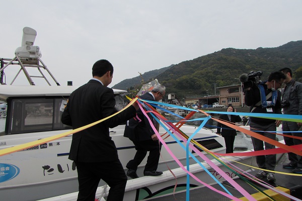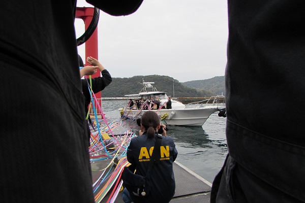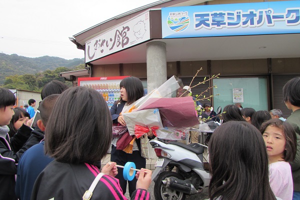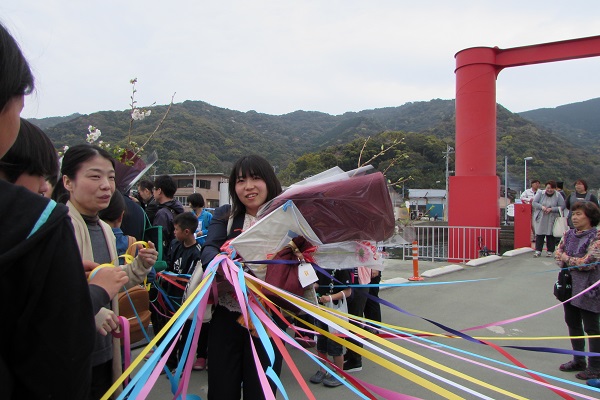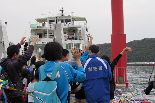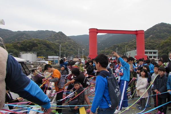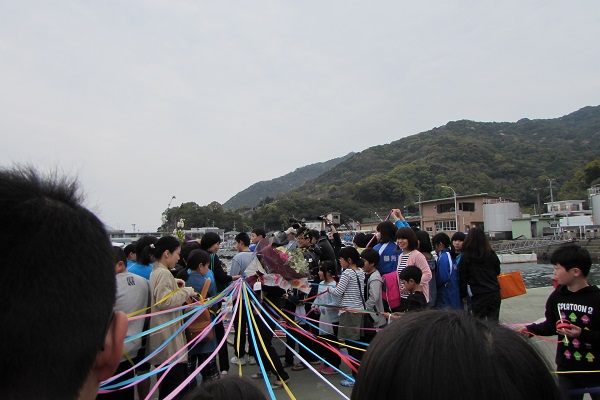 本日は、転任される先生方のお見送りがありました。御所浦町では、先生方が転任される際は、子ども達が引っ越しのお手伝いをして、港で紙テープを持ってもらい、感謝をこめてお見送りをします。