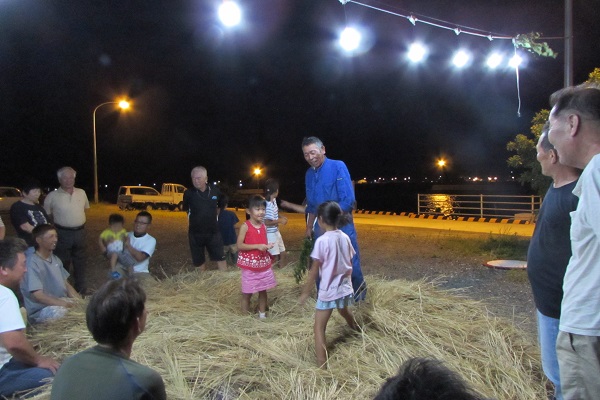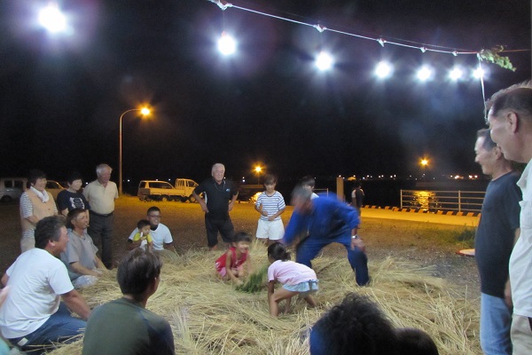 御所浦町では各地区で十五夜の綱引き・相撲が行われたようです、牧島牧本地区の様子を写真で紹介したいと思います。