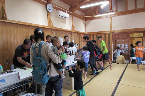 毎年牧本の荷揚げ場にての開催ですが、今年は台風の影響で風が強くコミセンでの開催となりました。