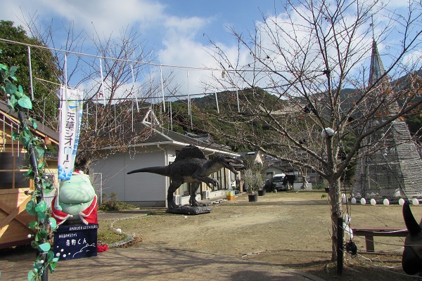 ▼おなじみの恐竜さんも点灯式を楽しみにしています