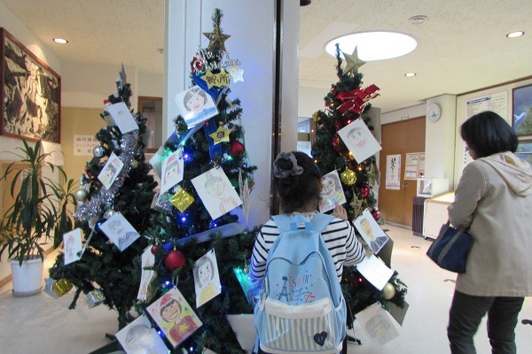 小学生の皆さんの自画像イラストがツリーを彩ります❤
