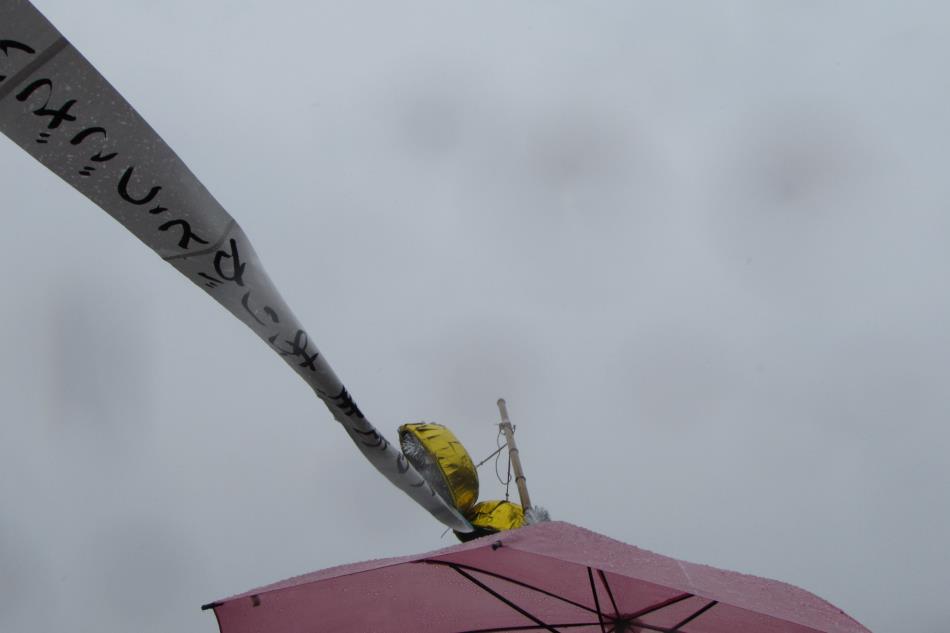 ▼教頭先生の傘も花吹雪で彩られました(笑)