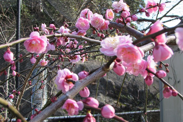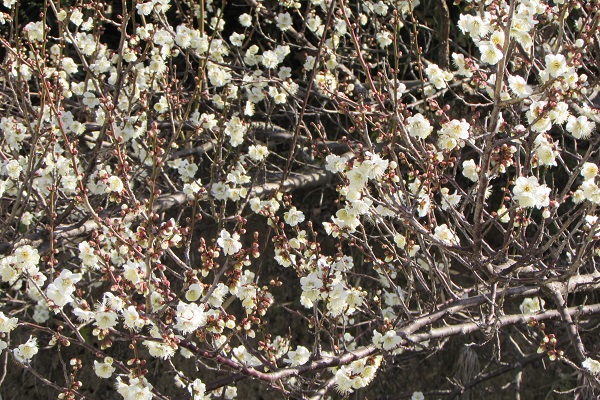 白にピンク愛らしい梅の花が春を告げています