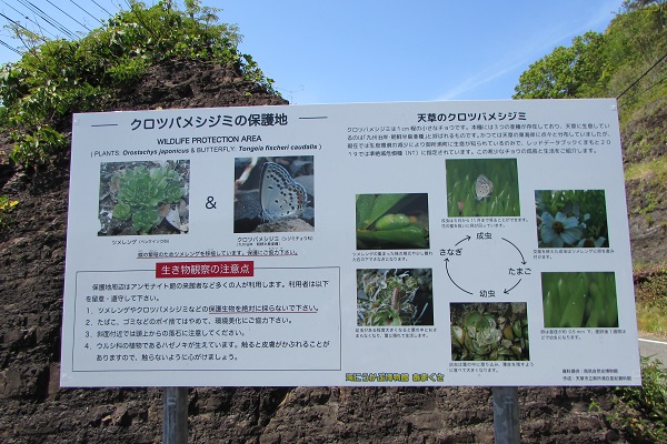 牧島・長浦地区のこの場所は、熊本県準絶滅危惧種に指定されているクロツバメシジミの保護地です。