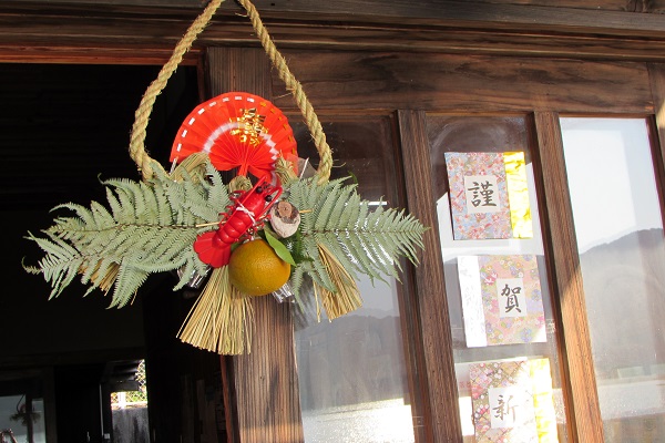 今朝は窓ふきをして地区の皆様に良い年がくるよう、しめ縄飾りをコミセン玄関に飾りました。