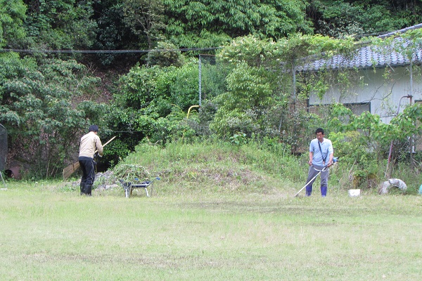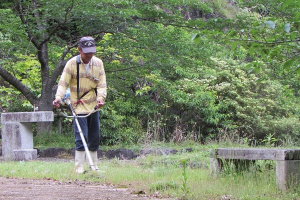 5月10日(金)、令和初のグラウンドゴルフ大会にむけて、みんなの広場・ナキ迫公園の草刈りが行われました。